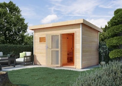 Ein Vorraum bietet einen geschützten Platz zum Umziehen und Abkühlen, reduziert Wärmeverlust beim Ein- und Aussteigen, hält Schmutz und Nässe vom Saunaraum fern und schafft Stauraum für Handtücher und Zubehör.