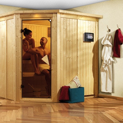 Bei Innensaunen spricht man außerdem meistens dann von Elementsaunen, wenn es sich dabei nicht um Saunen aus Massivholzbohlen handelt, sondern um Wandelemente in Sandwichbauweise. Sie bestehen aus zwei Schichten Profilholz sowie einer Dämmschicht und sind somit deutlich leichter, liefern aber eine ebenso gute, wenn nicht sogar bessere Wärmedämmung. Für den Eigenbau sind solche Elementsaunen also ideal - so lässt sich die Schwerstarbeit vermeiden und man erhält dennoch ein perfektes Ergebnis.